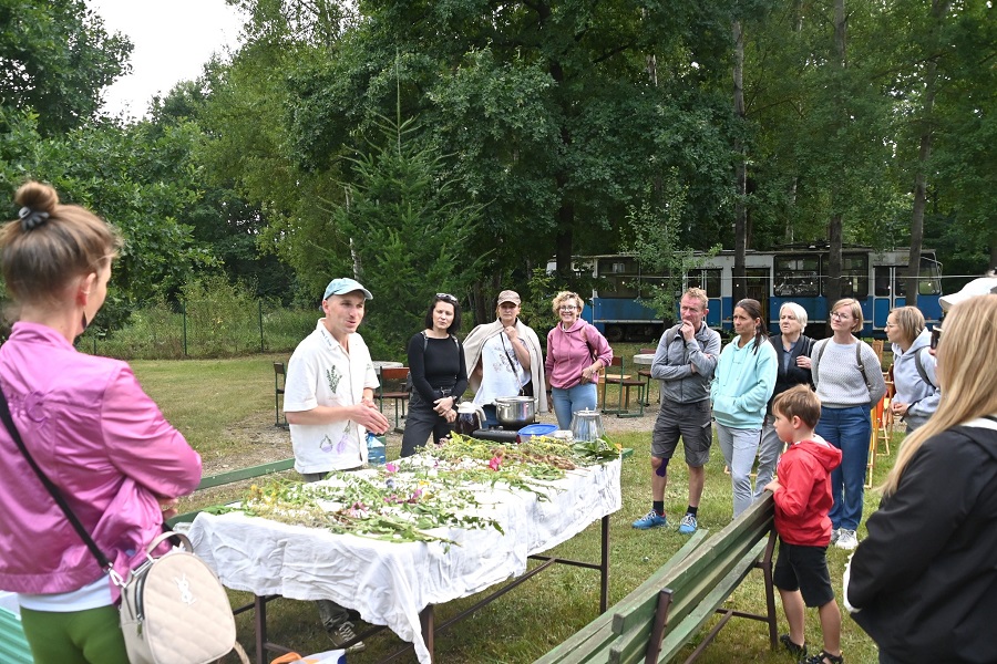 W ramach drugiego, wydarzenia ,,Kultura w harmonii z naturą – pożegnanie lata w Rudzie Milickiej", 24 sierpnia o godz., 15.30 odbył się spacer połączony z warsztatami z certyfikowanym Zielarzem Marcinem Skrzyniarzem Z Ziołorośli. Rozpoczęliśmy go warsztatami pod świetlicą w Rudzie Milickiej, a potem licznie przybyli uczestnicy udali się na spacer z zielarzem. Miejsce spaceru było nieco zaskakujące – to pusta działka położona w pobliżu świetlicy, która na szczęście dla przyrody jest przez właścicieli koszona dwa razy w roku, dzięki czemu rośnie na nim wiele cennych roślin, które wysiewają się same. Pan Marcin zachęcał, by podobnie postępować z naszymi trawnikami – pozostawiać takie miejsca w naszych ogrodach. Spacer zakończyliśmy, degustacją ziół, z których pan Marcin wykonał przepyszne Pesto ziołowe, masło ziołowe oraz napary. Uczestnicy mogli też kupić fantastyczne mieszanki ziołowe do samodzielnego przygotowywania naparów. Marcin działa w gminie Oborniki Śląskie i edukuje od lat, prowadzi też własną uprawę ziół. Półtorej godziny to stanowczo za mało, by mógł ją w pełni przekazać, ale uczestnicy warsztatów byli zachwyceni i na pewno powtórzymy je za rok. Zwłaszcza że Ruda Milicka dzięki sporej wilgotności, jaką dają okoliczne stawy, ma wiele niezwykłych roślin, na które często nie zwracamy uwagi. Warto poznać ich piękno i moc.