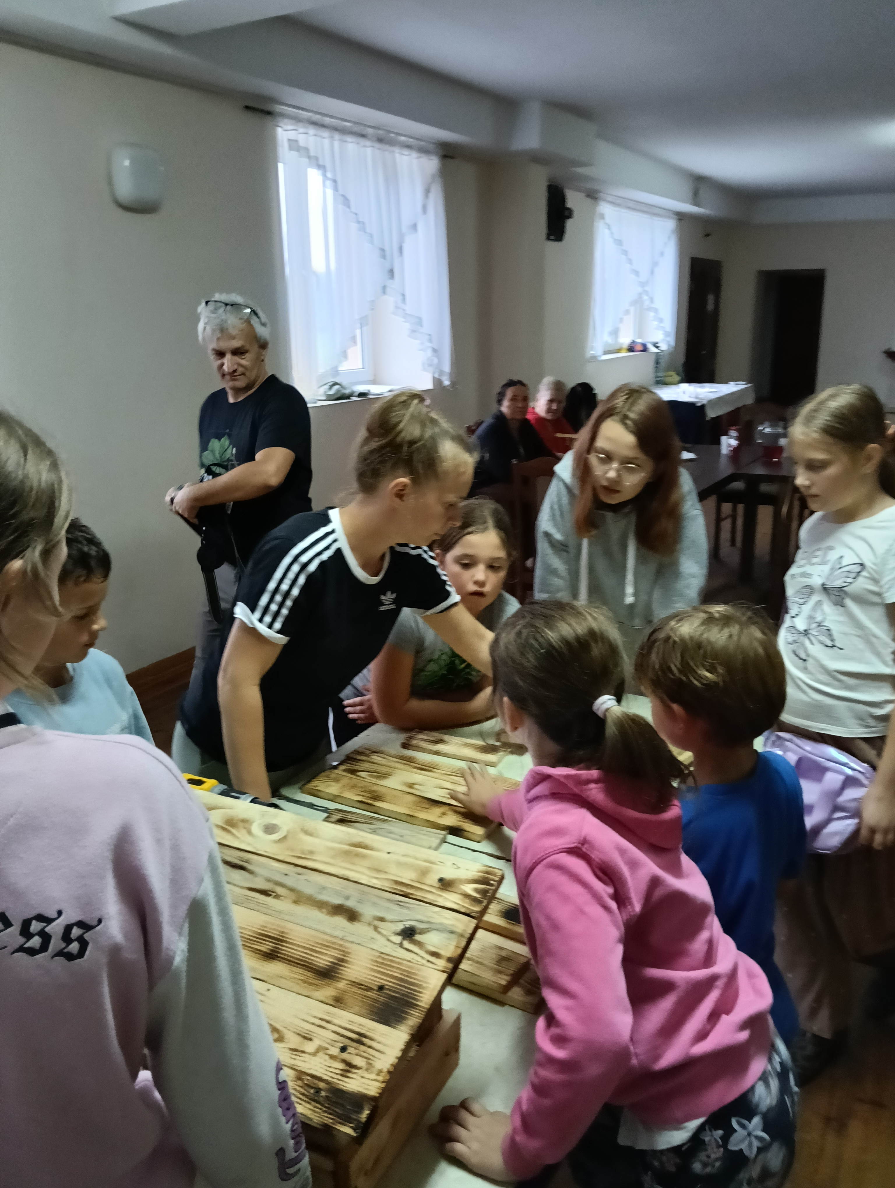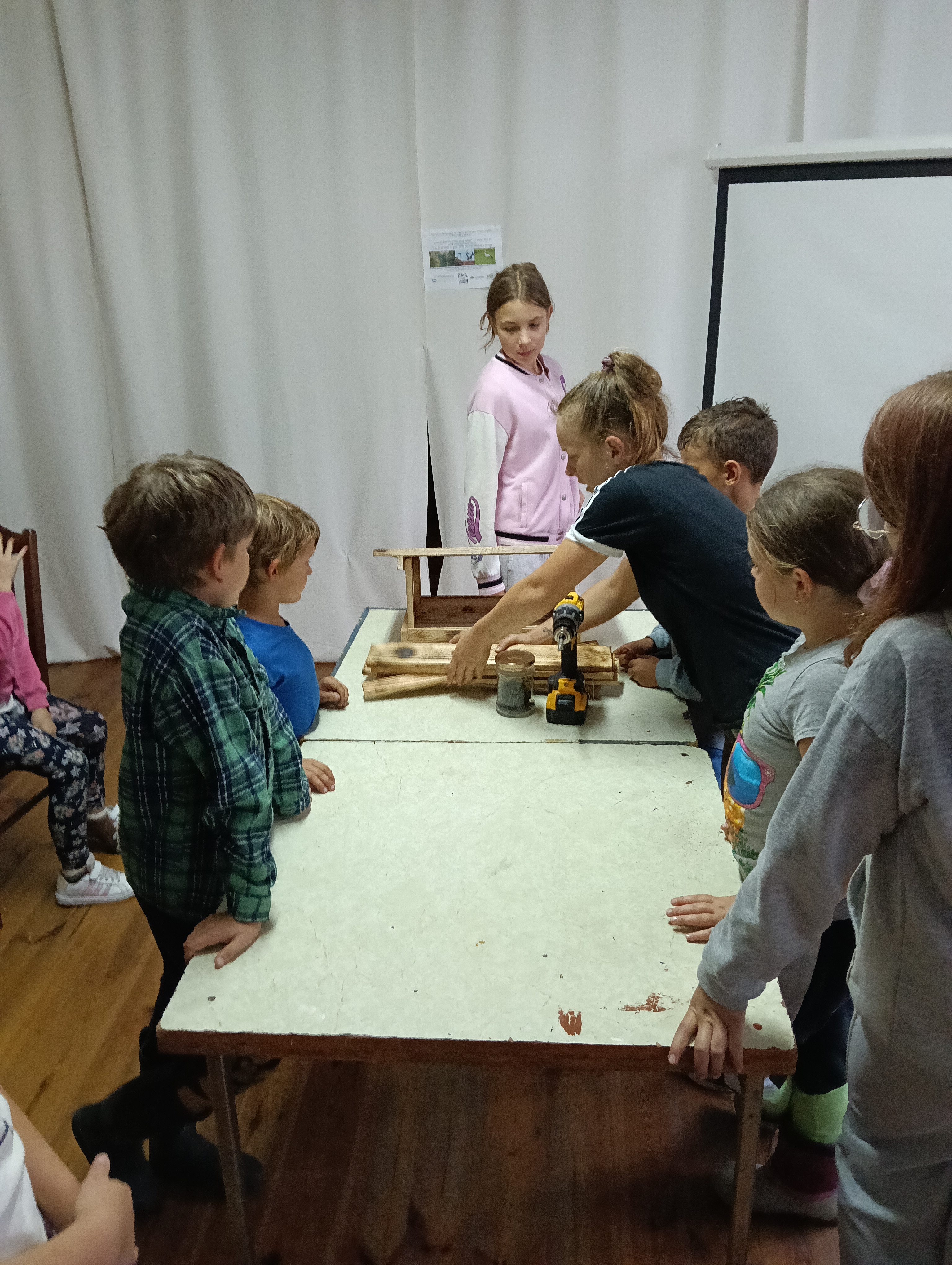 Na początku spotkania mimo niesprzyjającej pogody wybraliśmy się z panem Pawłem do lasu, gdzie mogliśmy podziwiać odgłosy ptaków, niektóre z nich nawet udało nam się zobaczyć, jednak każda próba zarobienia im zdjęć nie skończyła się pomyślnie. Uczestnicy zebrali trochę materiałów na budowę karmników, jednak stworzyliśmy je z desek przygotowanych przez naszego wolontariusza. Był tak uprzejmy że zrobił pierwszy karmnik na wzór. Wtedy zaczęły się warsztaty każdy z uczestników miał okazję popracować nad karmnikiem. Ze względu że większość z uczestników to dzieci pracowali pod czujnym okiem pani Zuzi. Po warsztatach przyszła kolej na kolejną dawkę wiedzy. Pan Paweł pilnie się dla nas przygotował dostarczył nam wiedzę po przez prezentację multimedialną, zdjęcia które sam wykonał i oczywiście podzielił się fascynującymi faktami na temat ptaków. Na koniec spotkania wszyscy uczestnicy dostali skromne nagrody. Jak zawsze wszyscy spisali się na medal.