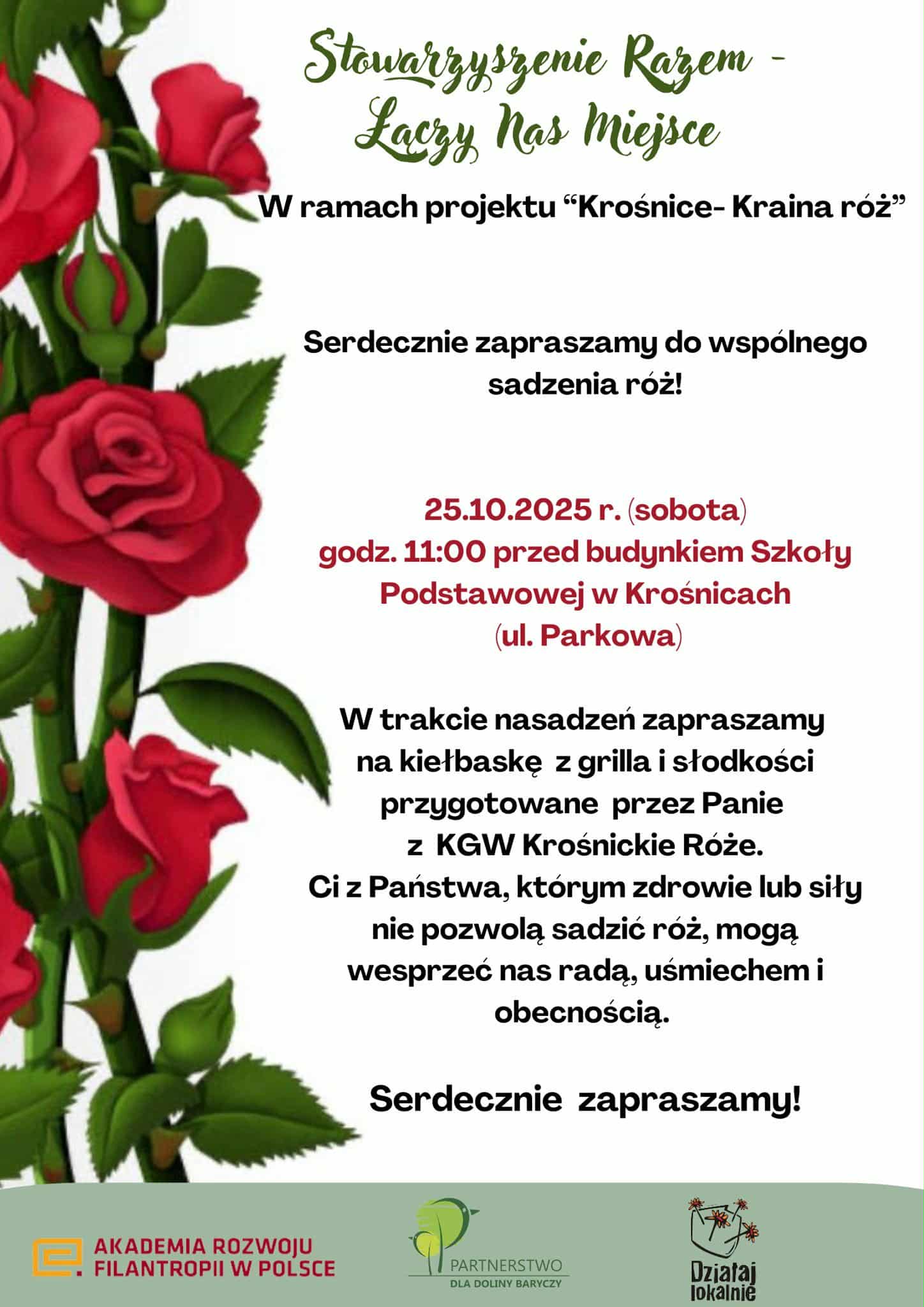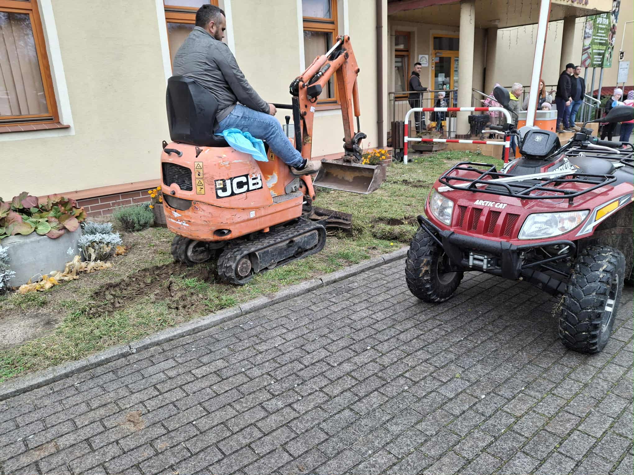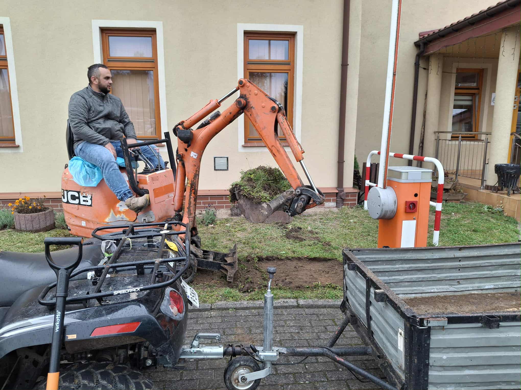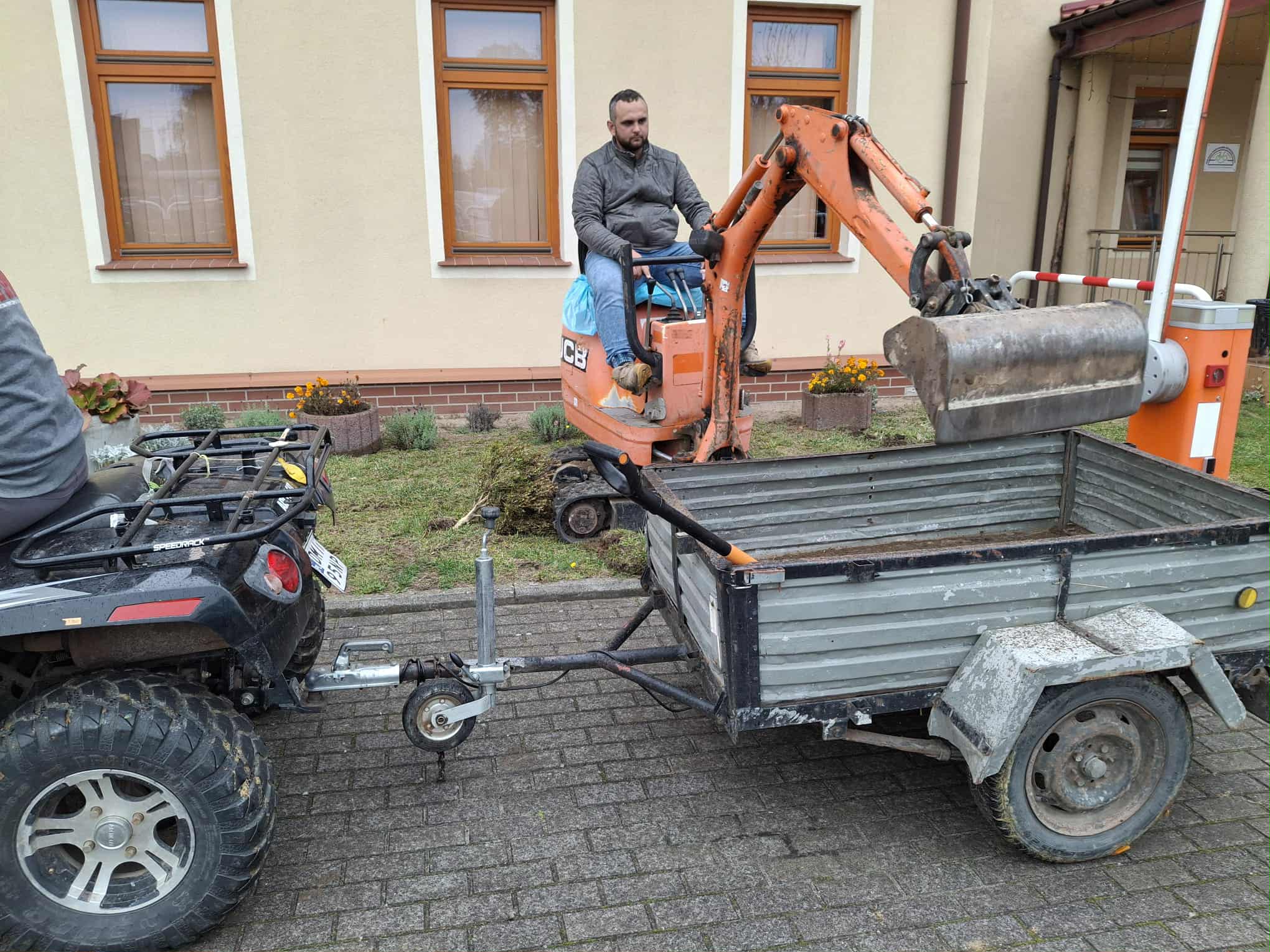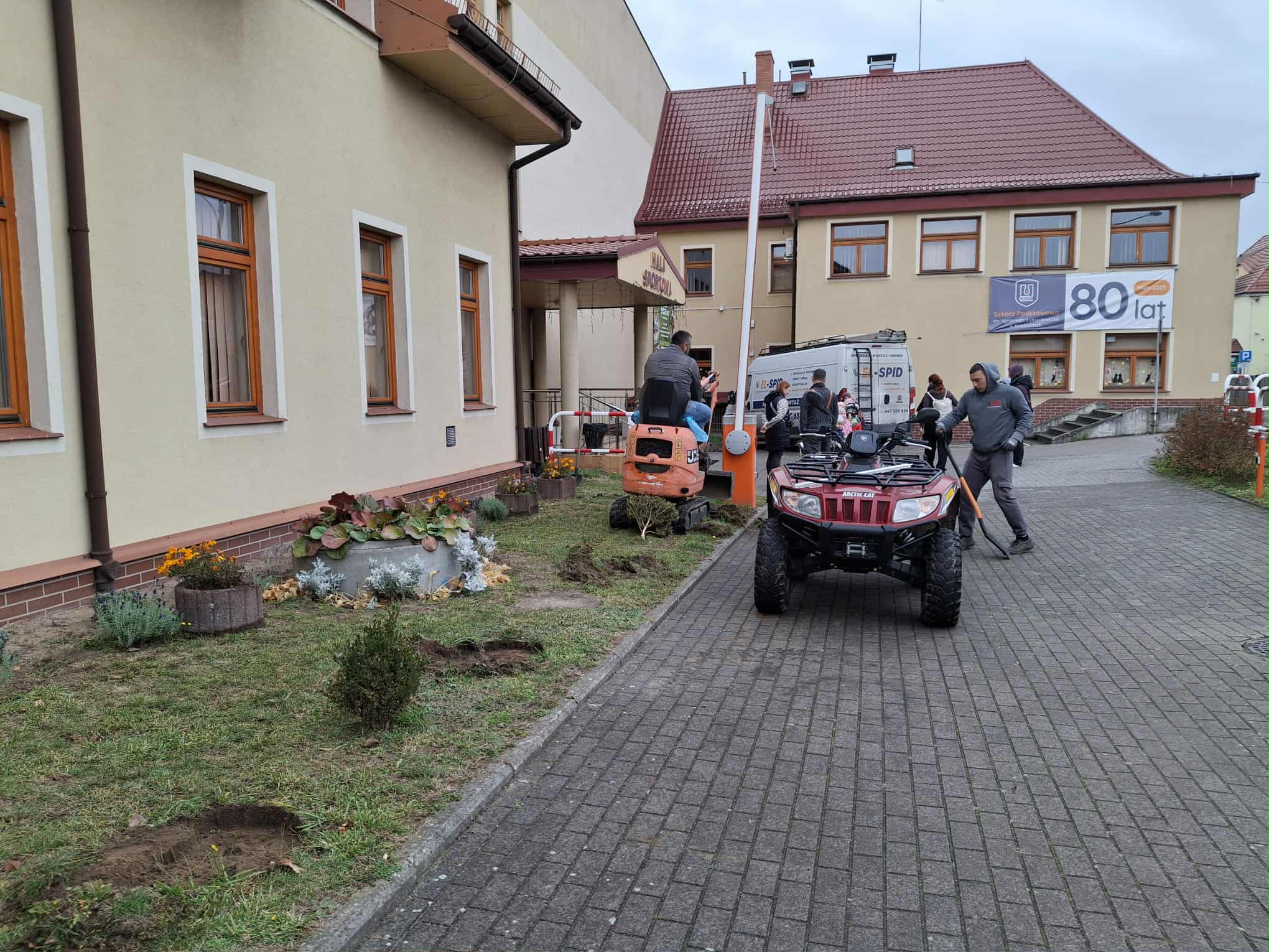22.10.2025 r. dzieki wsparciu i uprzejmości krośniczanina p. Sławomir Jaworskiego oraz pomocy pracowników jego firmy przed szkołę została usunieta darń, w miejscu gdzie w sobotę bedziemy sadzili róże.W pracach pomogli panowie konserwatorzy ze szkoły, który ponadto przywieźli korę i podłoże pod róże ze sklepu ogrodniczego.