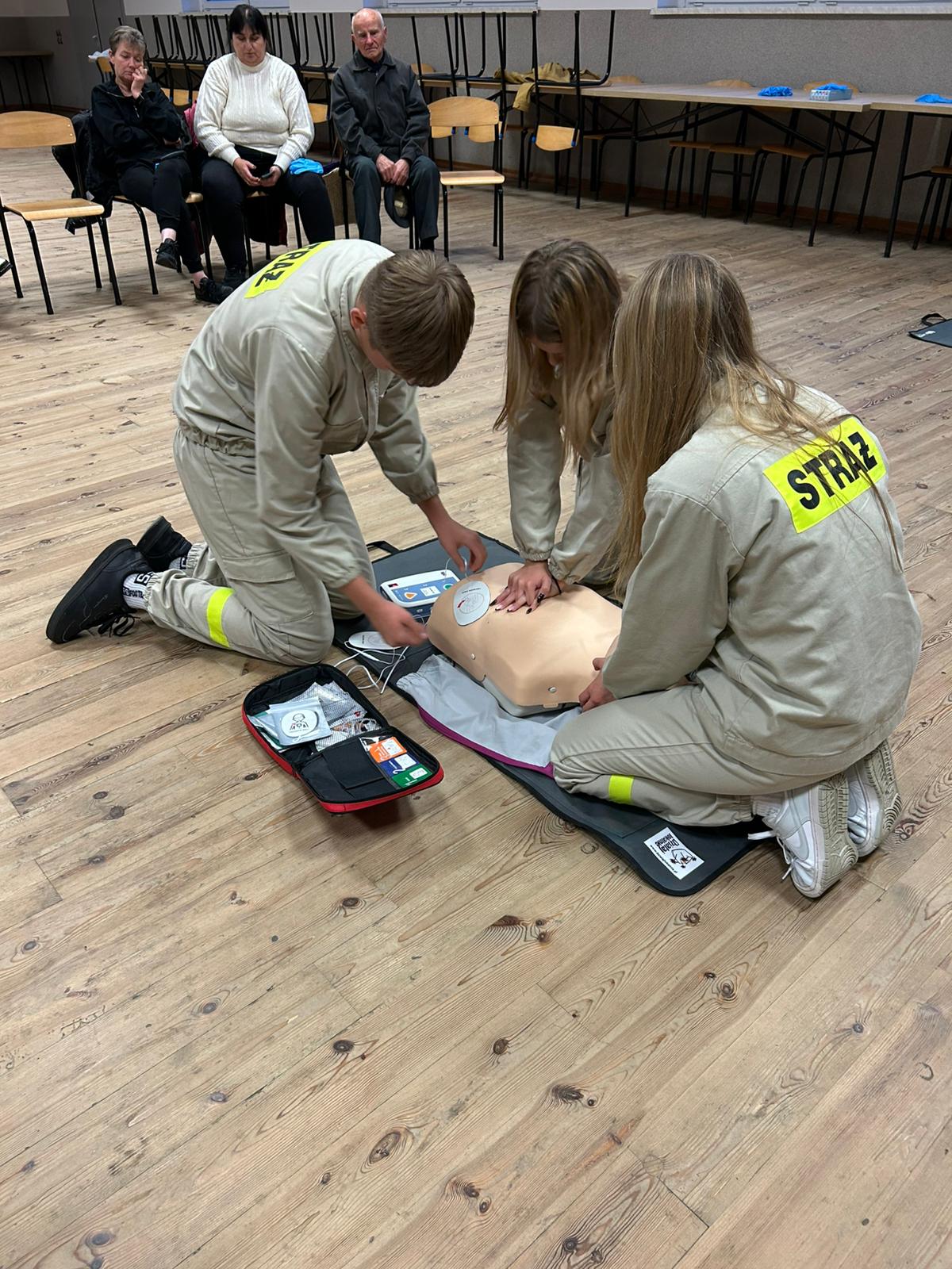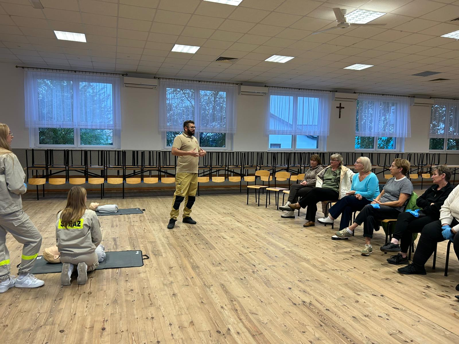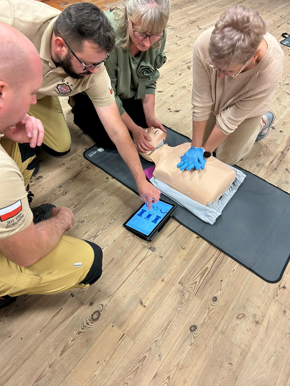 Podczas spotkania uczystnicy mieli okazje nauczyć się jak prawidłwo reagować w sytuacjach zagrożenia życia- od wezwania pomocy, przez ocenę stanu poszkodowanego, aż po praktyczne ćwiczenia resustytacji krożeniowo-oddechowej (RKO) oraz obsługę defibrylatora AED.
