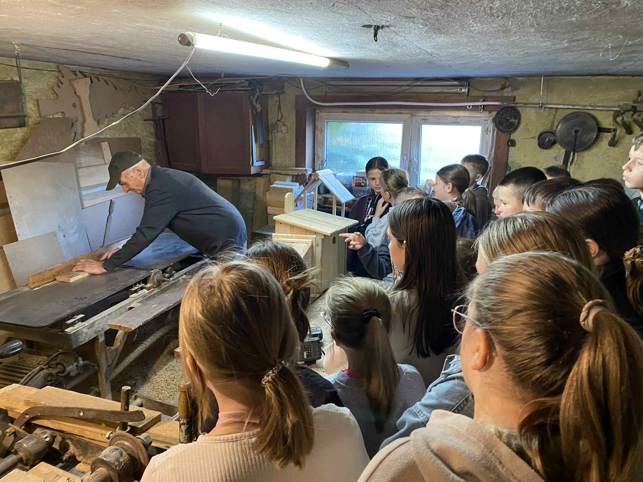 Pierwsze zajęcia ekologiczne za nami. W czwartek 25 września grupa uczniów Szkoły Podstawowej w Uciechowie odwiedziła zaprzyjaźnionego stolarza z amiłowania, który zdradził im tajniki wykonania domków lęgowych i domków dla owadów.