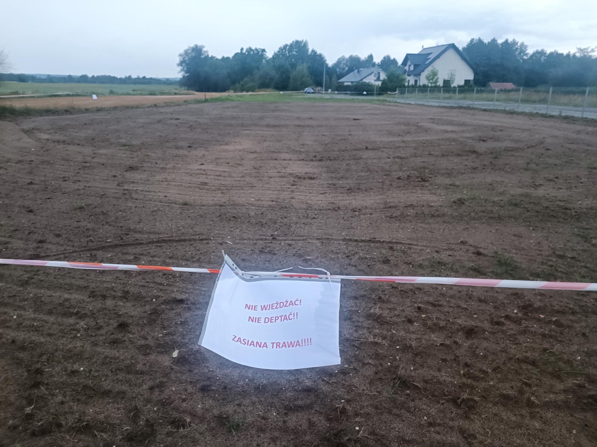 Mamy już zasianą trawę i czekamy, aż się zazieleni.