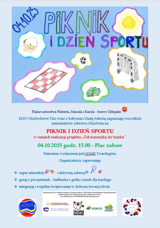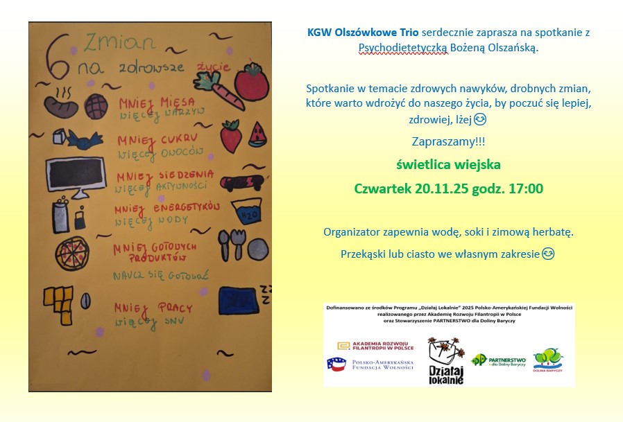 KWG Olszówkowe Trio w Olszówce przy współpracy z sołtysem i radą sołecką wsi Olszówka, Trzy Chałupy i Gola Mała wystąpiło o dofinansowanie tego projektu z programu Działaj Lokalnie i taki grant został nam przydzielony!!