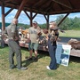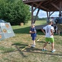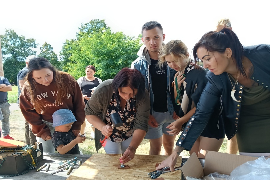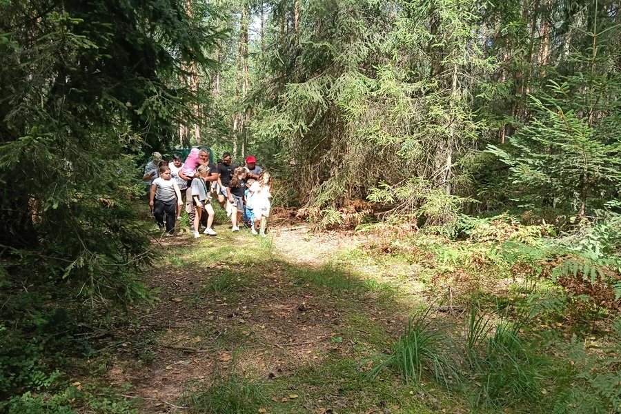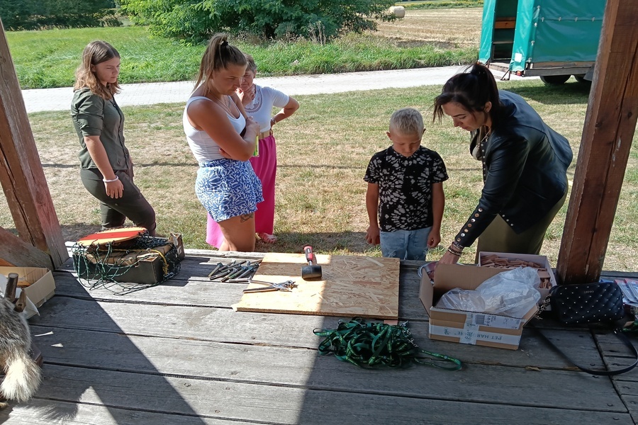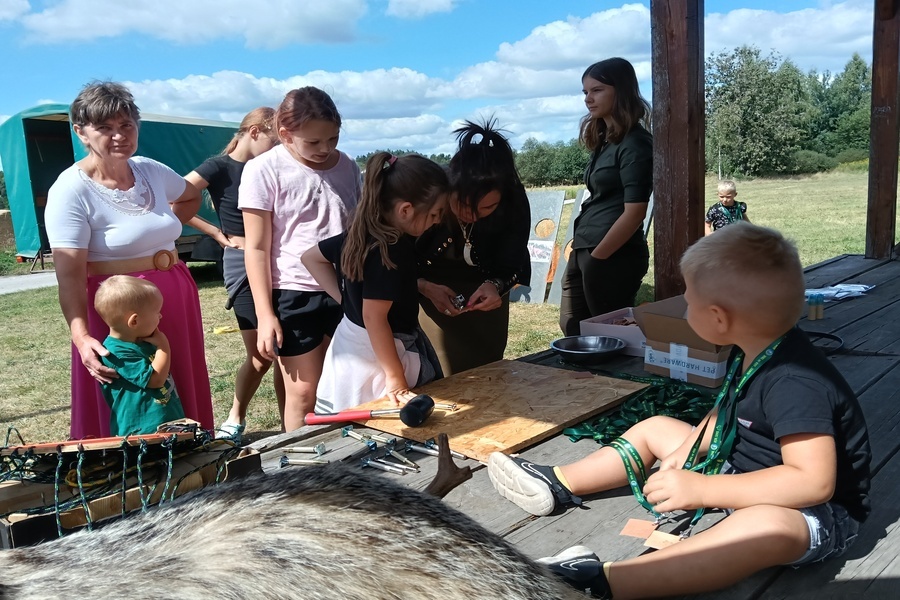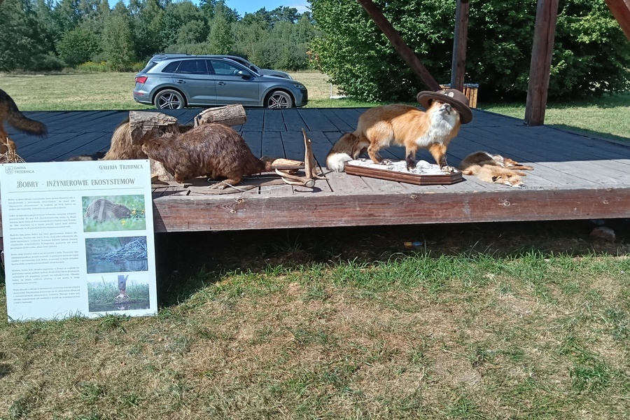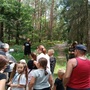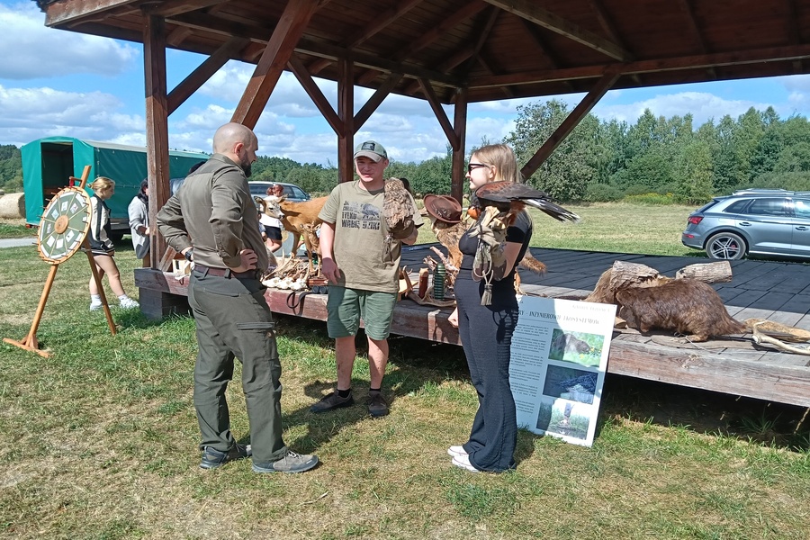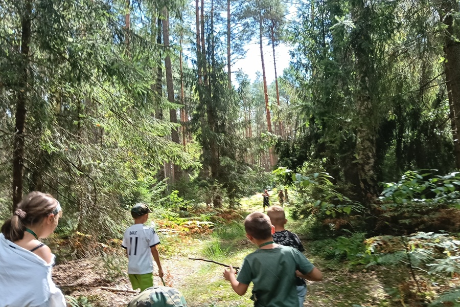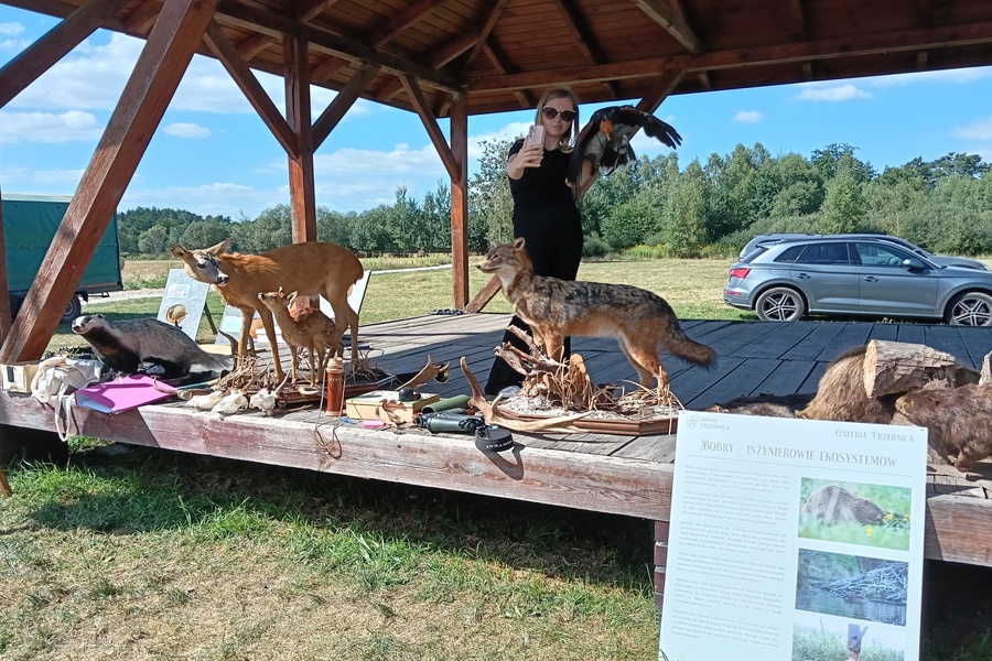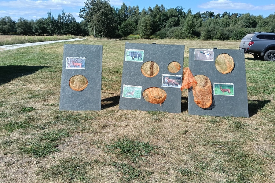 Koło Łowieckie "Sokół" przygotowało dla nas wiele atrakcji. Mieliśmy okazję sprawdzić kto najcelniej strzela. Potem wybraliśmy się na wycieczkę do lasu, żebyśmy mogli poznać wiedzę na temat sieci powiązań międzygatunkowych. Mieliśmy okazję zobaczyć paśnik przy którym zostawiliśmy jedzenie które wcześniej nasyzkowali członkowie koła oraz lizawki dla zwierząt do których dzieci miały okazję włożyć sól. W międzyczasie dowiedzieliśmy się wielu ciekawych informacji na temat sieci powiązań międzygatunkowych. Dzięki uprzejmości pana Sebastiana mieliśmy okazję przyjrzeć się Danielom z jego hodowli. Po powrocie przeprowadzone zostało koło fortuny ze zdobytej wiedzy. Każdy uczestnik po dobrej odpowiedzi wybierał nagrodę. Mieliśmy także szansę przyjrzeć się z bliska jastrzębiowi i sobie, która miała swój debiut. Dlatego też właściciel sowy przeprowadził dla niej wybór imienia. Wygrało imię Sowidka Banditka.