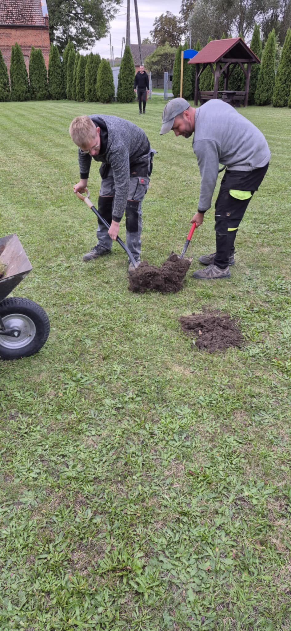 Prace przebiegały etapami- wykopaliśmy dołki, wlaliśmy wodę i dopiero wtedy posadziliśmy drzewka, by miały jak najlepsze warunki do przyjęcia się.