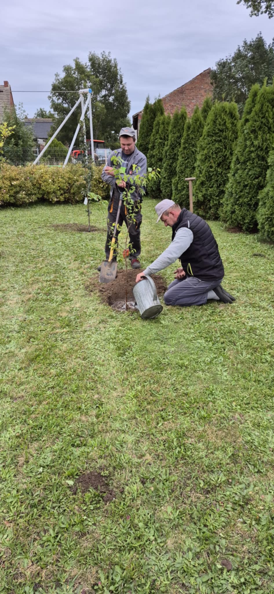 Tego dnia wspólnie przygotowaliśmy podłoże i posadziliśmy 12 drzewek owocowych- grusze, śliwy, jabłonie i morele. Każde z nich otrzymało swoje miejsce, które wybraliśmy tak, aby było słoneczne, a jednocześnie mało wietrzne- idealne do zdrowego wzrotu i owocowania.