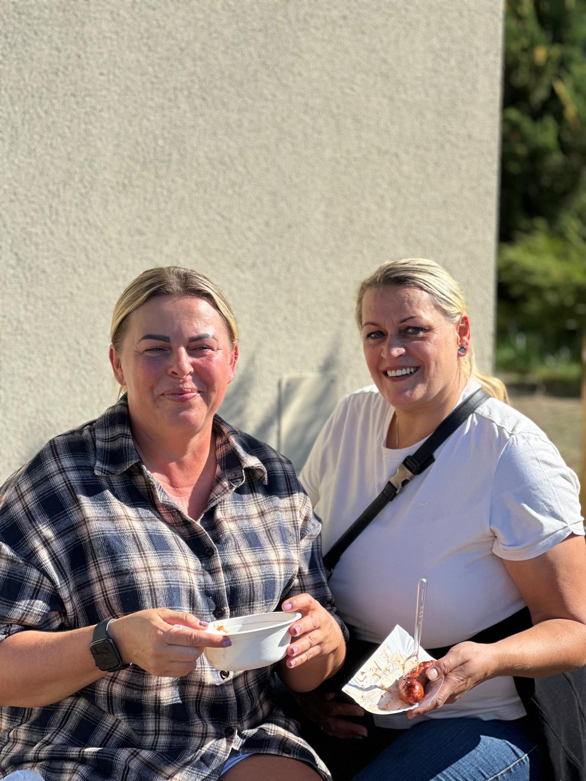Po powrocie na wszystkich czekało przepyszne jedzonko – grill, pajda chleba ze smalcem i inne smakołyki przygotowane przez mieszkańców. Była to doskonała okazja, by w miłej atmosferze usiąść razem, porozmawiać i cieszyć się wspólnie spędzonym czasem.