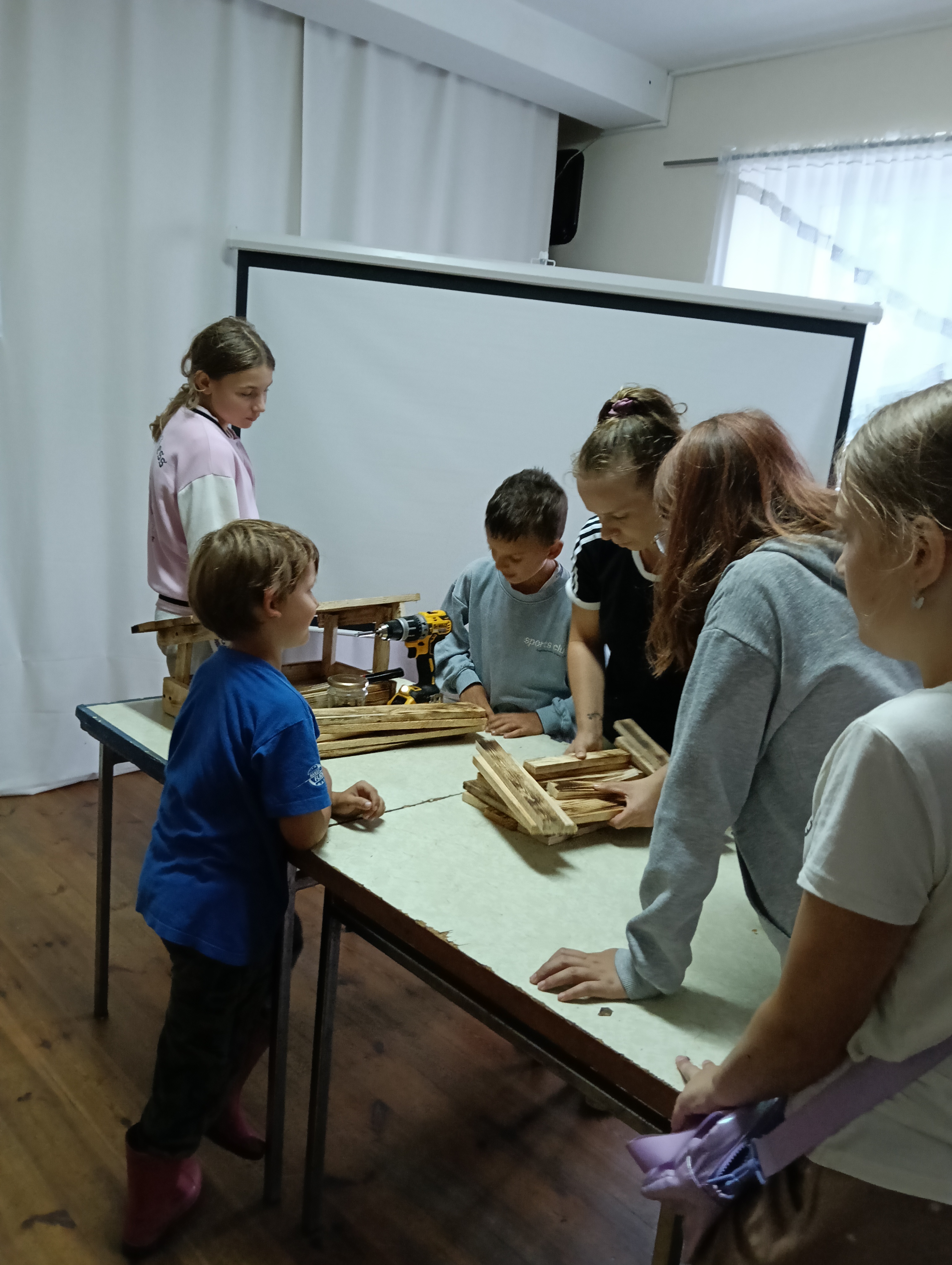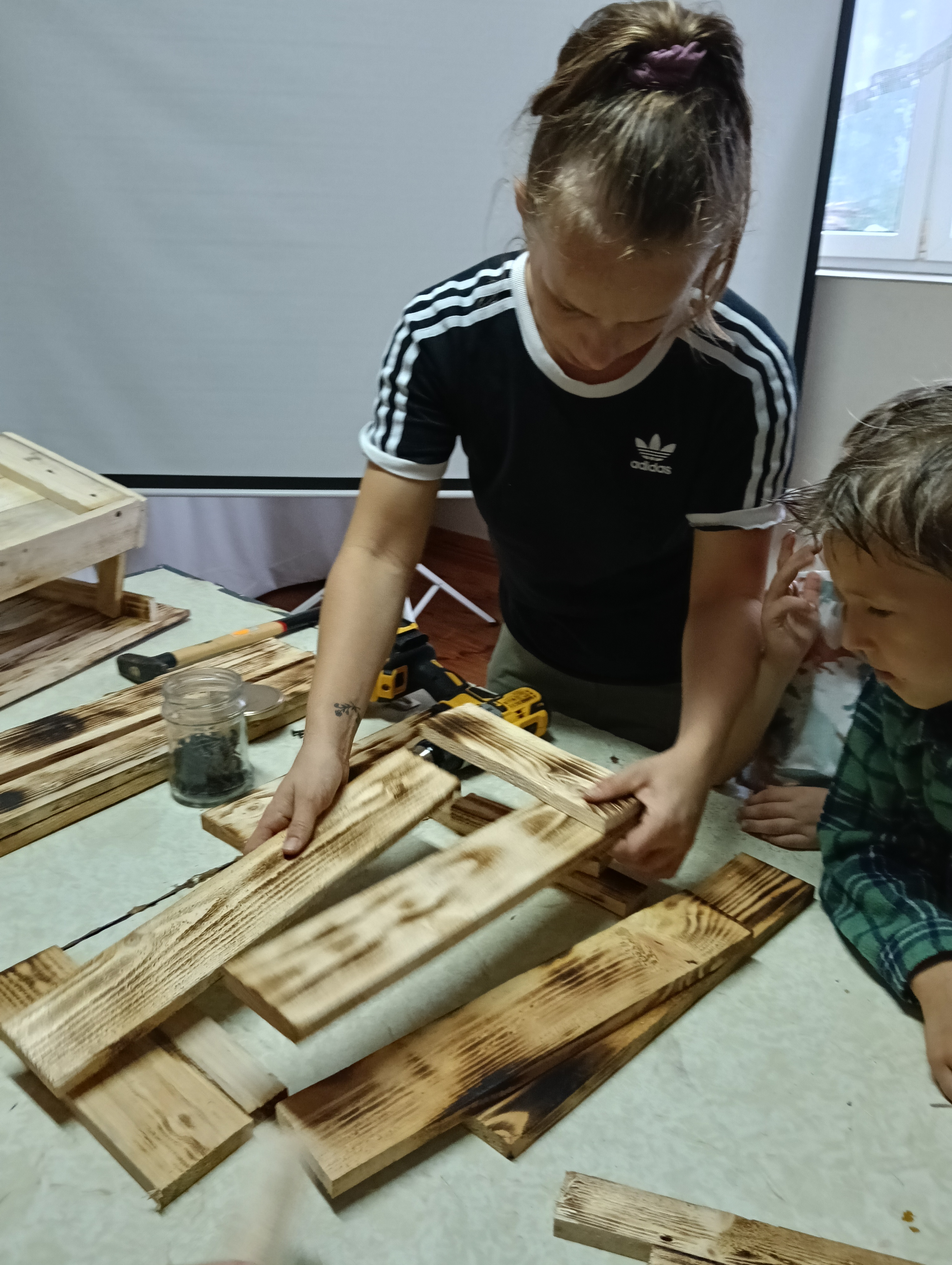 Na początku spotkania mimo niesprzyjającej pogody wybraliśmy się z panem Pawłem do lasu, gdzie mogliśmy podziwiać odgłosy ptaków, niektóre z nich nawet udało nam się zobaczyć, jednak każda próba zarobienia im zdjęć nie skończyła się pomyślnie. Uczestnicy zebrali trochę materiałów na budowę karmników, jednak stworzyliśmy je z desek przygotowanych przez naszego wolontariusza. Był tak uprzejmy że zrobił pierwszy karmnik na wzór. Wtedy zaczęły się warsztaty każdy z uczestników miał okazję popracować nad karmnikiem. Ze względu że większość z uczestników to dzieci pracowali pod czujnym okiem pani Zuzi. Po warsztatach przyszła kolej na kolejną dawkę wiedzy. Pan Paweł pilnie się dla nas przygotował dostarczył nam wiedzę po przez prezentację multimedialną, zdjęcia które sam wykonał i oczywiście podzielił się fascynującymi faktami na temat ptaków. Na koniec spotkania wszyscy uczestnicy dostali skromne nagrody. Jak zawsze wszyscy spisali się na medal.
