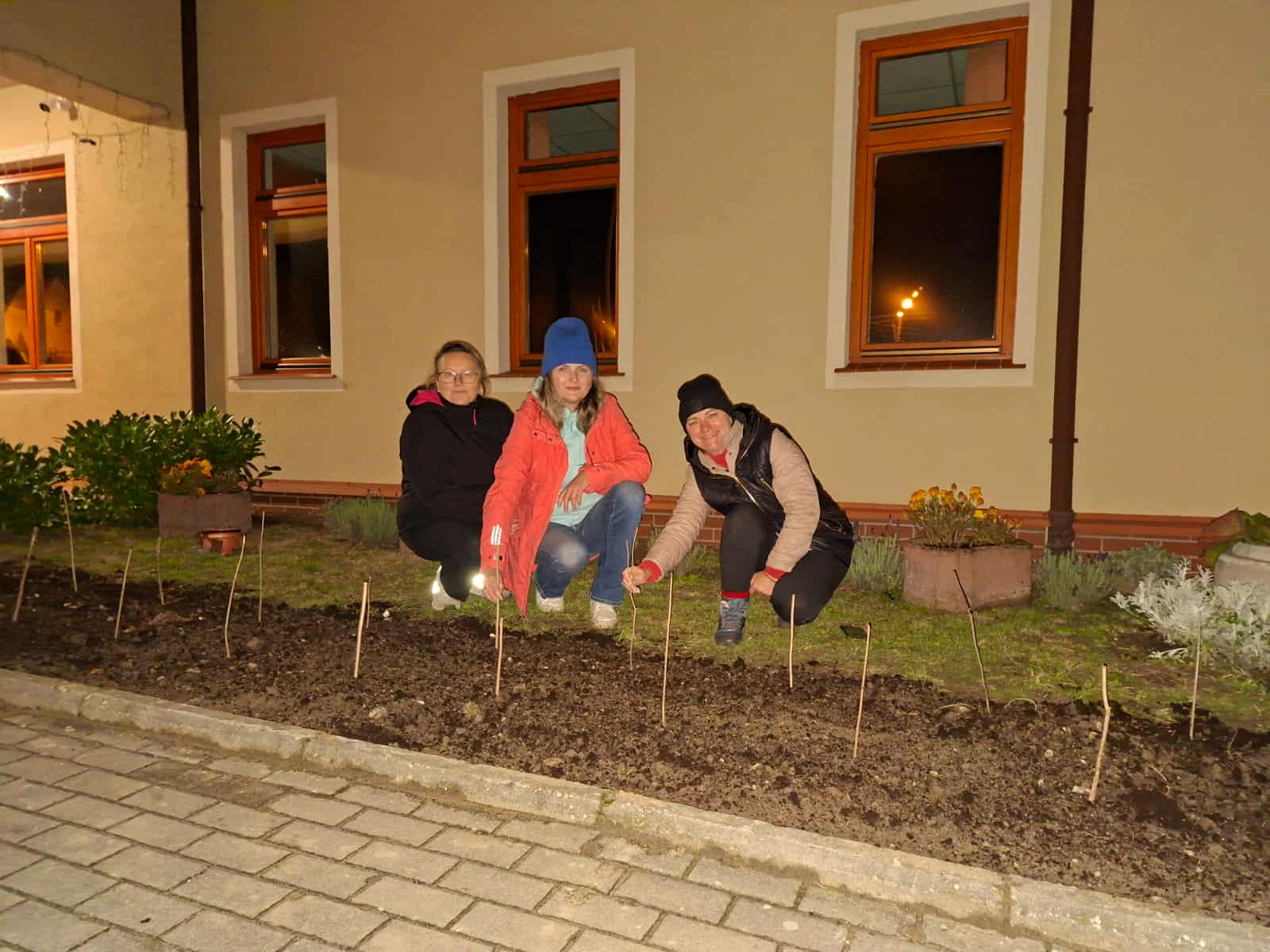 Tego dnia wyznaczyliśmy patykami miejsca, gdzie będą w sobotę 25.10.2025 sadzone róże.