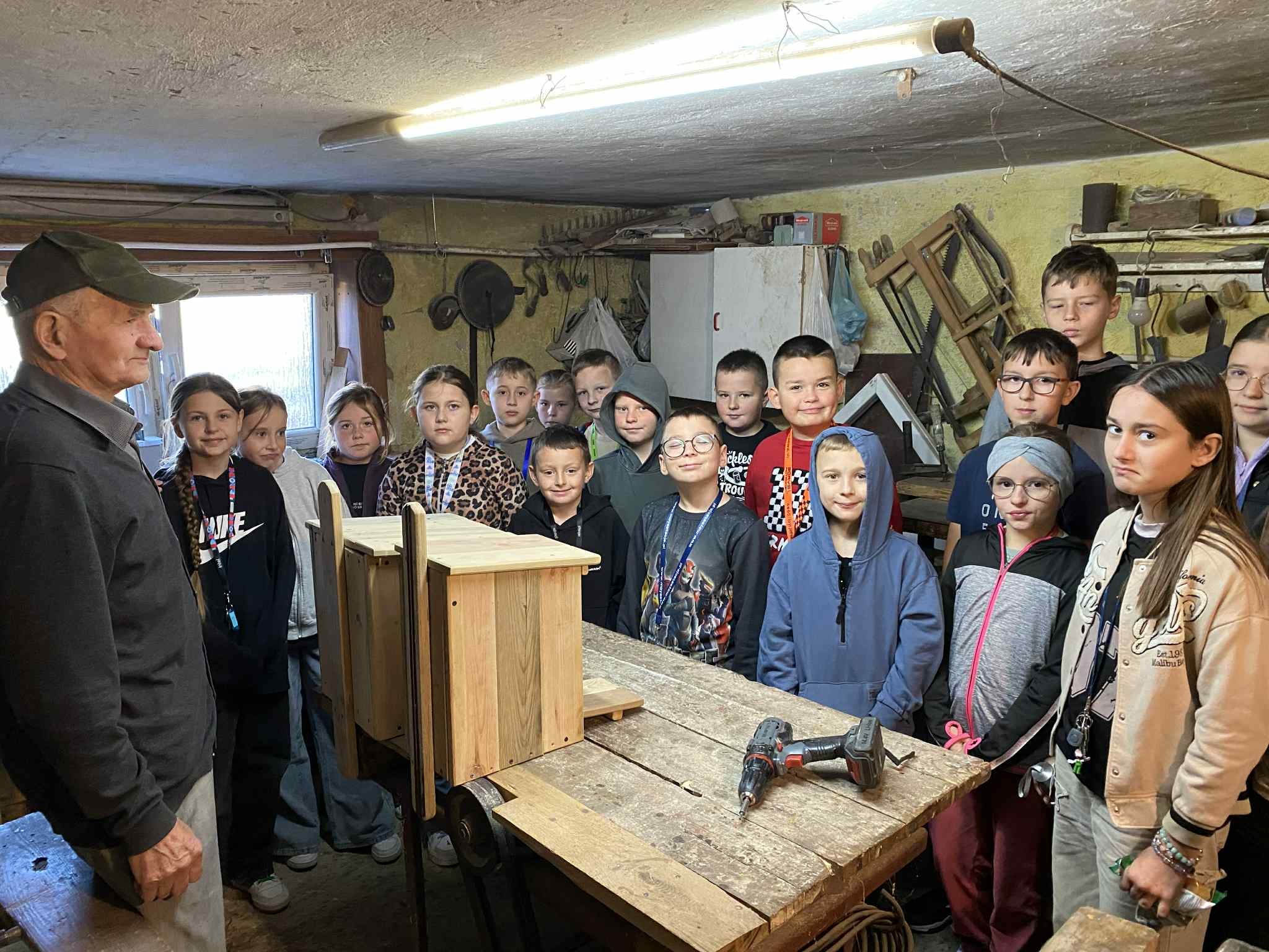 Pierwsze zajęcia ekologiczne za nami. W czwartek 25 września grupa uczniów Szkoły Podstawowej w Uciechowie odwiedziła zaprzyjaźnionego stolarza z amiłowania, który zdradził im tajniki wykonania domków lęgowych i domków dla owadów.